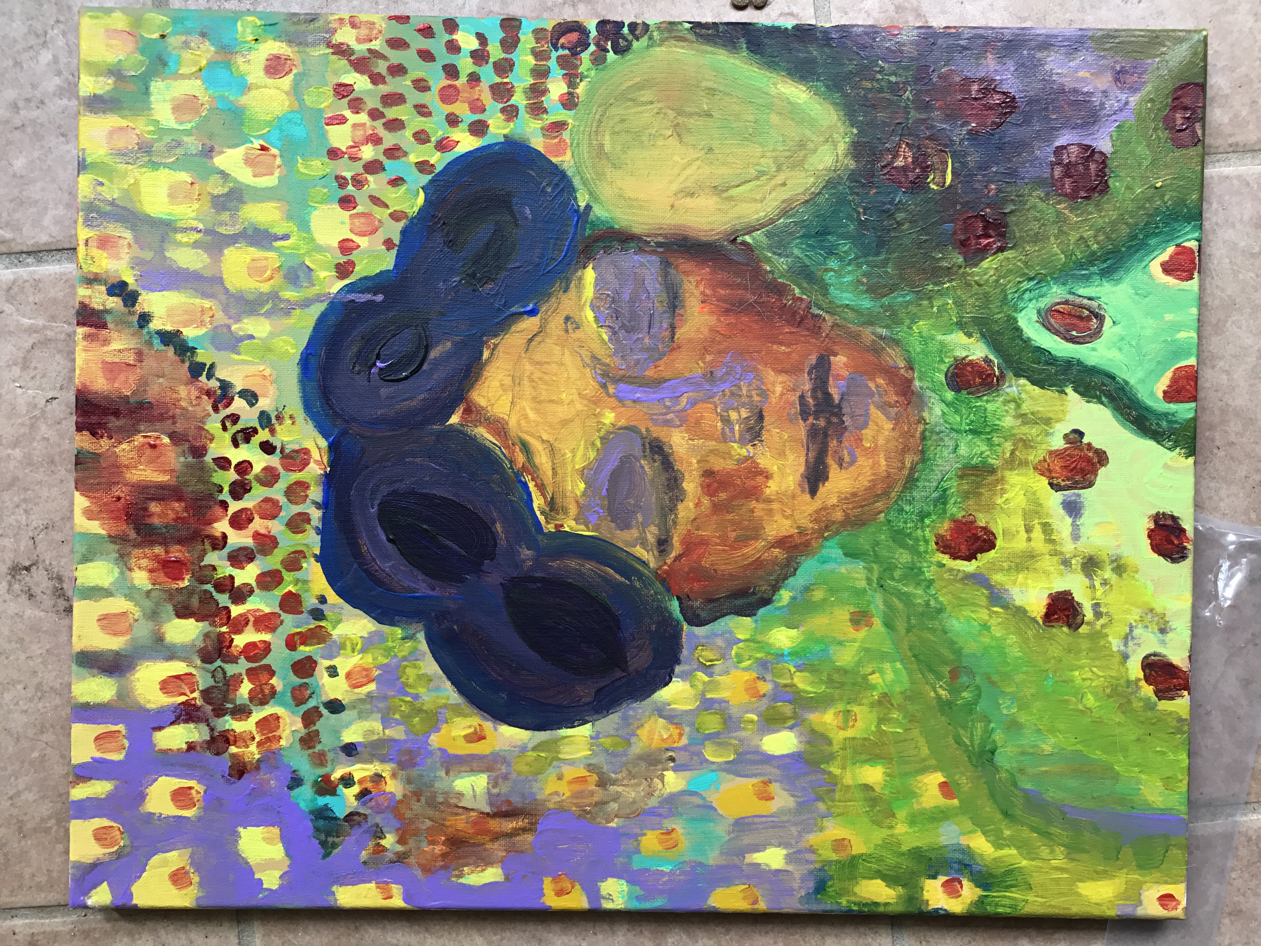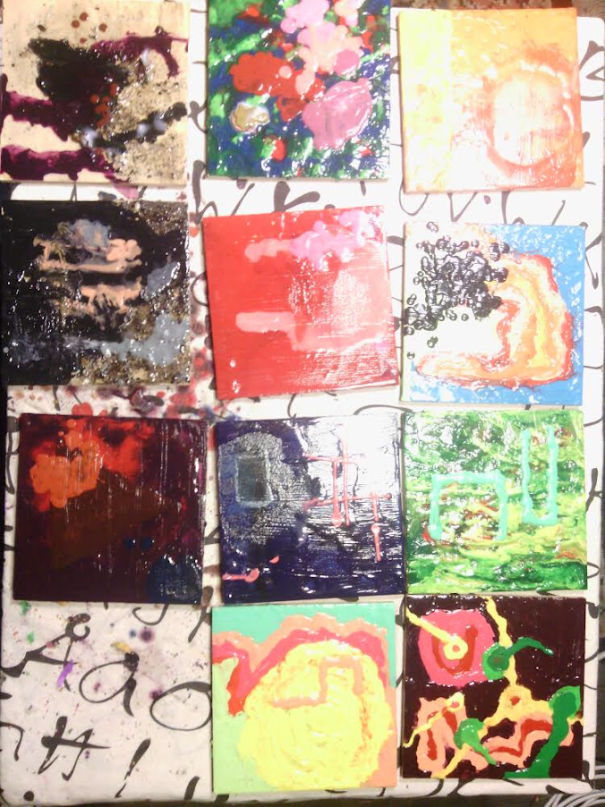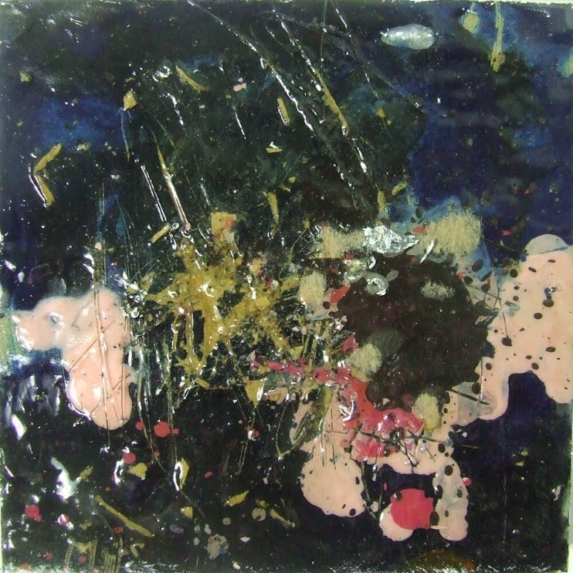 “Guitar Hell” Decorated Wood Box Collaboration with Brent Gutzeit. We each decorated a side. My side is crayons melted with a heat gun as seen below.